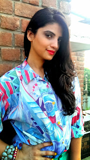 printed shirt has patches of emerald green that match my pants. The shirt is